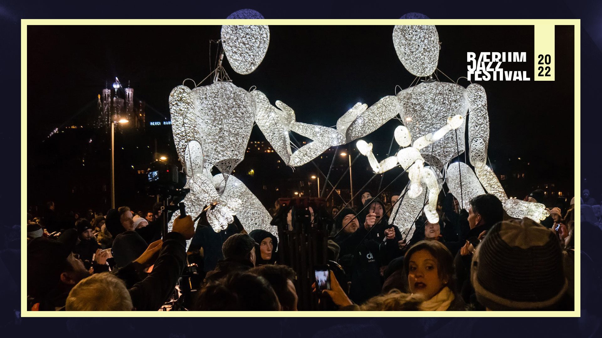 Vennlige lysgiganter på vandring ute i Sandvika under Bærum Jazzfestival.